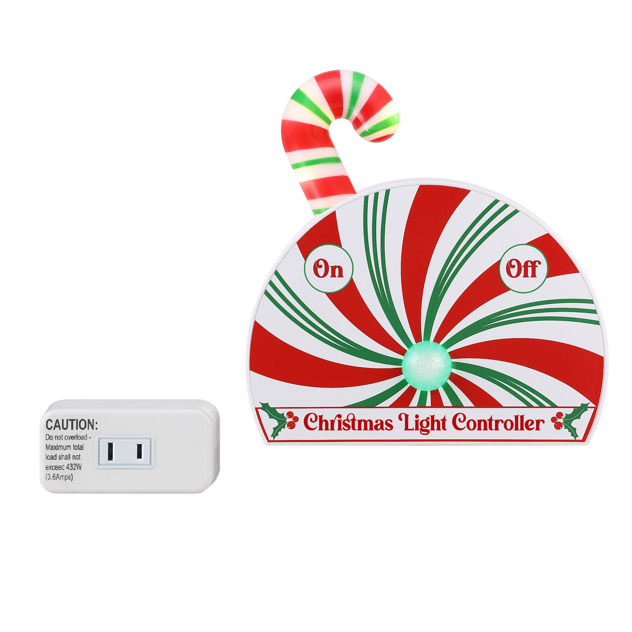 Description: This recall involves a decorative tree light controller that operates wirelessly to turn on holiday lights on a tree. The decorative controller contains two parts: a lever or a switch that can be pulled to turn the holiday lights on or off, and a separate, white receiver that plugs into an outlet and into which the tree's holiday lights are plugged. The controller sold at Walmart and Cracker Barrel is shaped like a green, red and white peppermint candy with a candy cane on/off lever and displays the words "Christmas Light Controller". The controller sold at Target is sold under the Wondershop™ brand and is shaped like a square on/off switch box with green, red and white balls and displays the words "Tree Lighting Switch". The white wireless receptacle that is plugged into an outlet contains the words "Mr. Christmas" and one of these three model numbers printed on the white receptacle: 39611, 39612 or 39630.