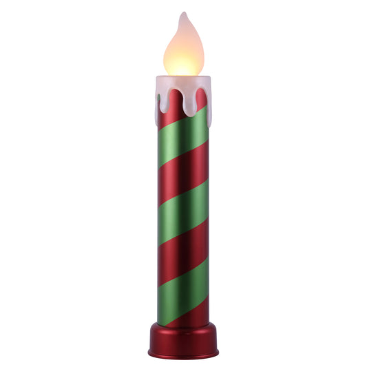 36 in. Striped Metallic Blow Mold Candle - Red and Green